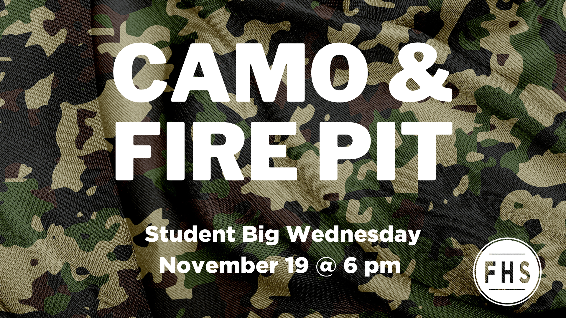 Join our Student Ministry for Camo and Fire Pit on Wednesday, November 19 at 6:00pm!