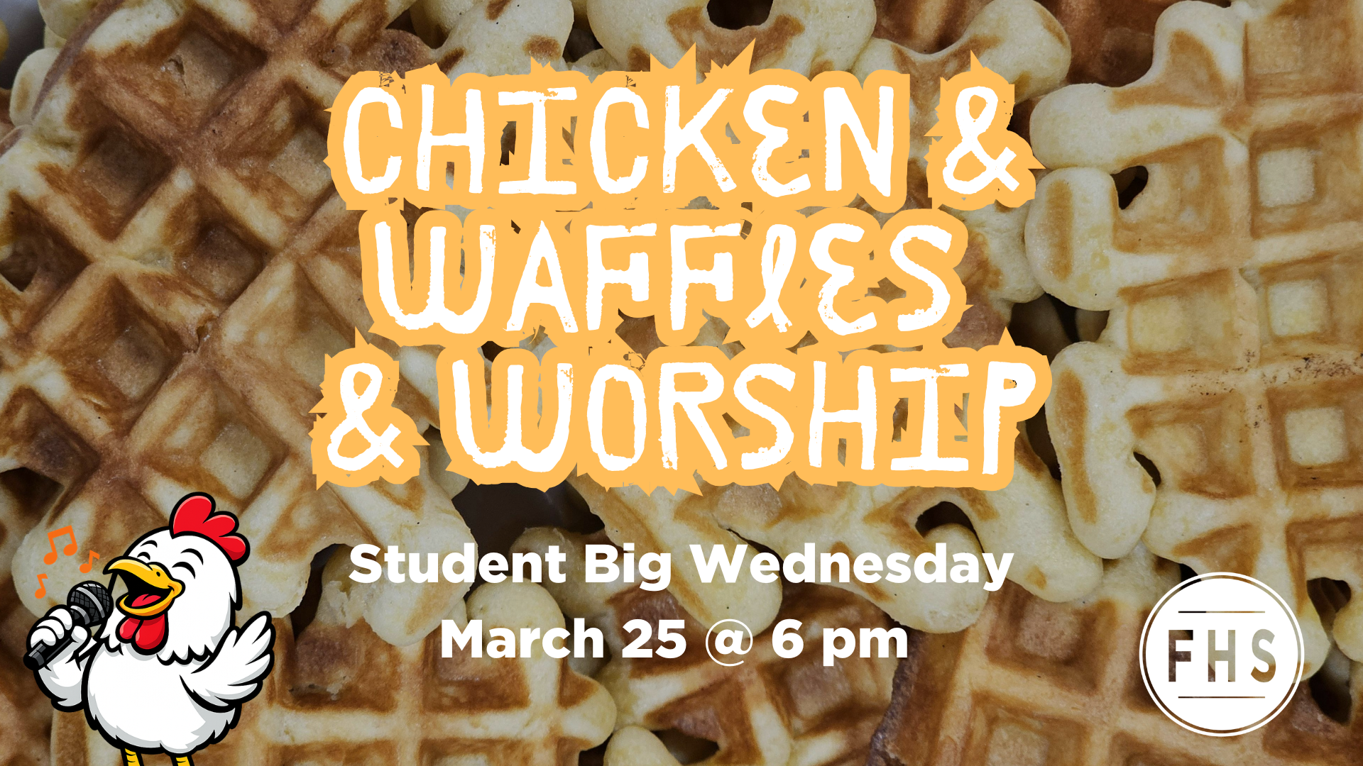 Join our Student Ministry for Chicken & Waffles & Worship on Wednesday, March 25 at 6:00pm!