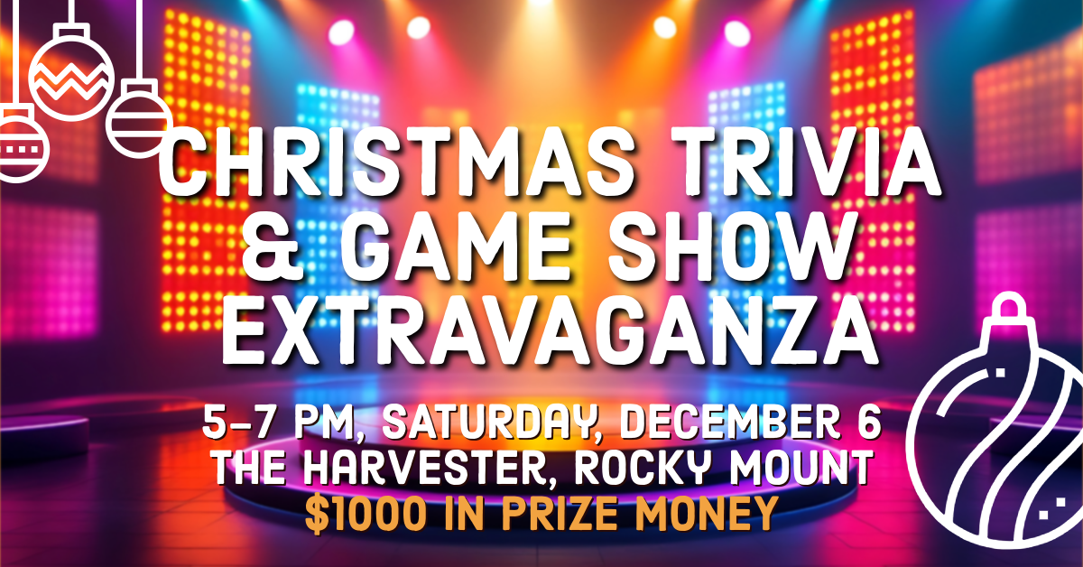 As part of Come Home to Franklin County Christmas on Saturday, December 6, we will be hosting a series of trivia and game show games at the Rocky Mount Harvester from 5:00-7:00PM. $1,000 in prize money! No registration needed. Just show up for a fun night of celebrating the spirit of Christmas!