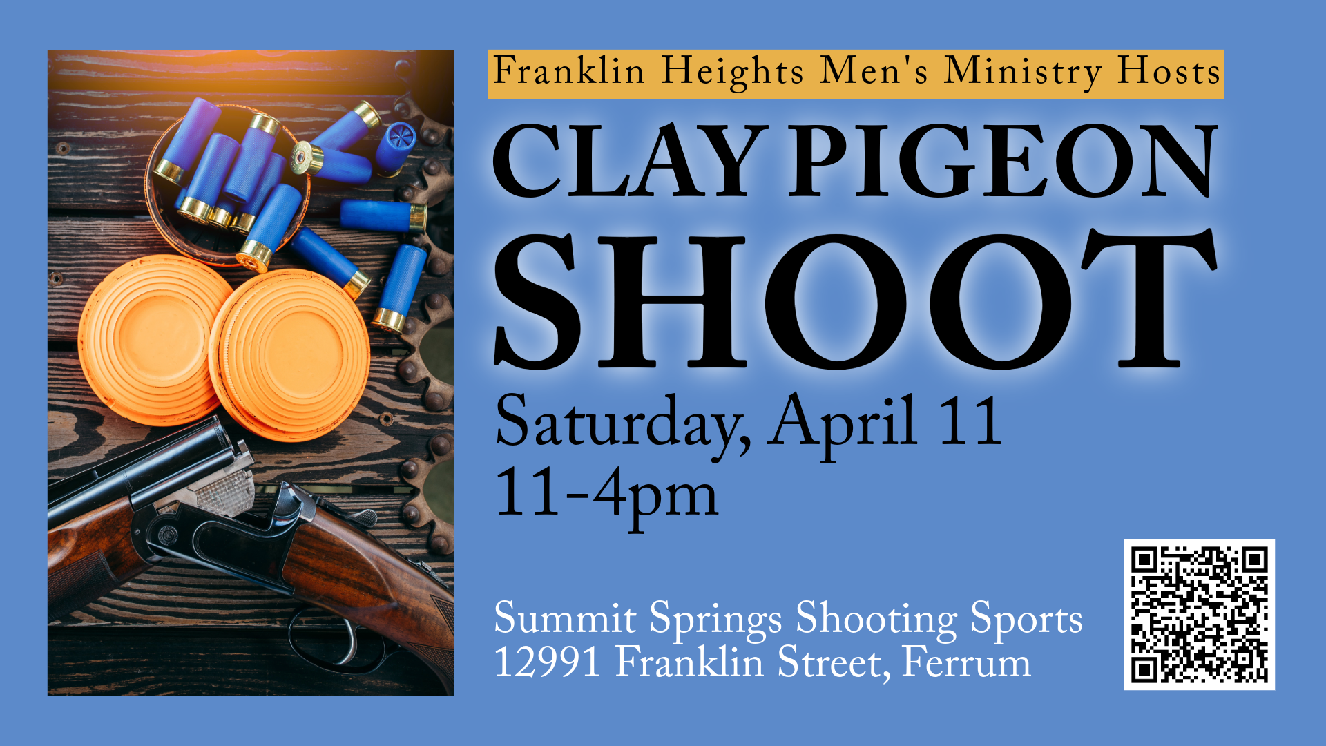As part of the Franklin Heights Men’s Ministry, join us for an afternoon of shooting fun combining precision, skill, and strategy as we navigate a course designed to simulate the challenging movements of game birds in flight. Please click here to register. When: Saturday, April 11th from 11:00am-4:00pm Where: Summit Springs Shooting Sports 12991 Franklin […]